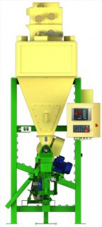 Фасовка средней производительности сыпучих гранулированных продуктов (рассыпной комбикорм, гранулированный комбикорм, мелкокусковой продукт и др.) грансоставом до 40 мм с системой уплотнения продукта.